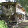 Puutüvedele rajatud kahekordne katusealune, põhiline muusika ja